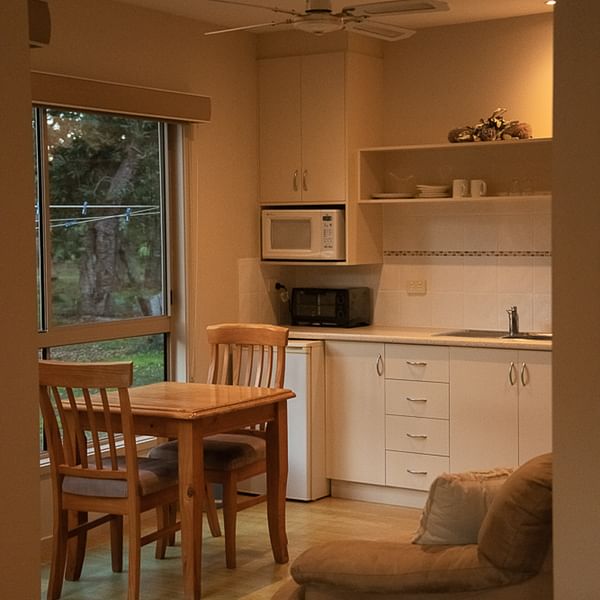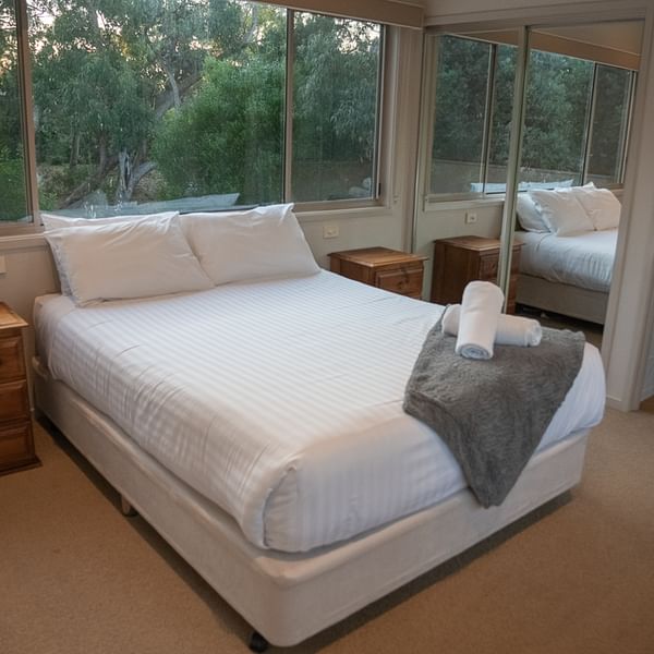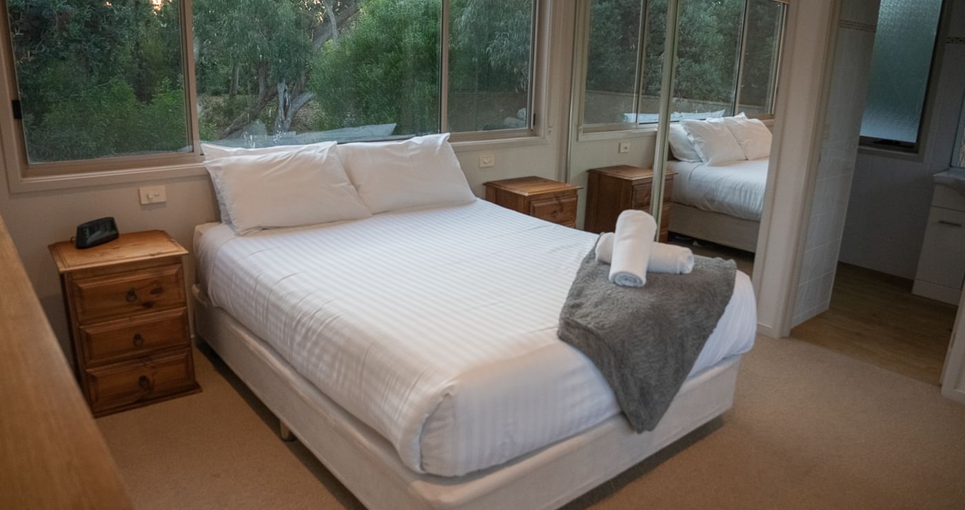 Each of our Apollo, Arrow, and Bungaree three-bed lodges have a “parent’s retreat” area, which contains a queen bed with its own separate lounge area, kitchenette, and ensuite bathroom with spa bath. Each lodge also offers a queen bed with private ensuite bathroom as well as a twin room with two single beds and a family bathroom.