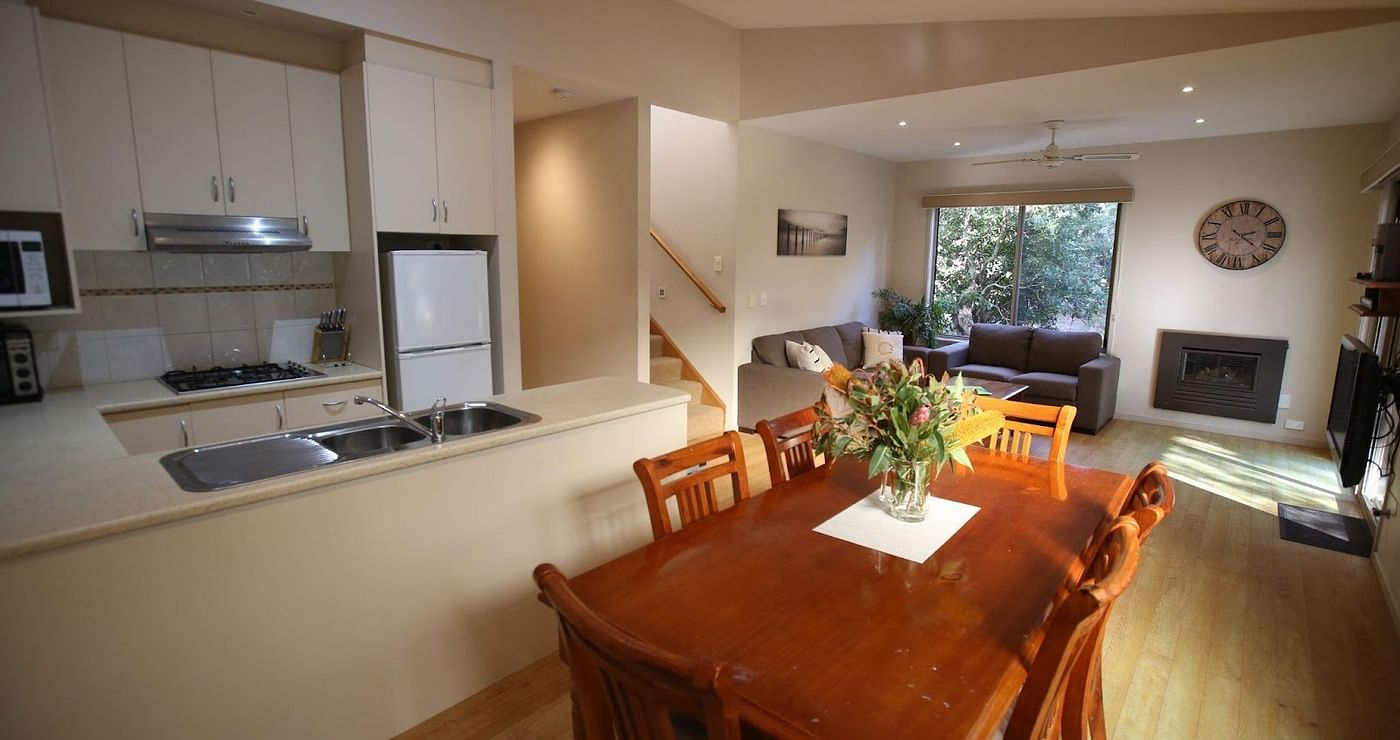 If you’re holidaying with family or friends, our three-bedroom, three-bathroom lodges are the perfect place to relax and enjoy each others’ company. Our three-bed lodges have fantastic natural bush views and are located in a secluded area of the resort where you can watch kangaroos and other native animals from either of your two wide, covered decks.
